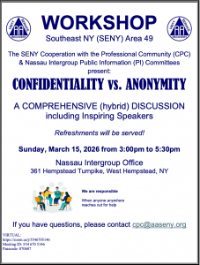 Nassau Intergroup / SENY Confidentiality vs. Anonymity Workshop